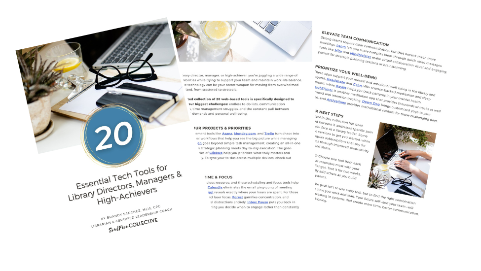 Grab our FREE guide: “20 Essential Tech Tools for Library Directors, Managers & High-Achievers” – your roadmap to transforming chaos into clarity.
